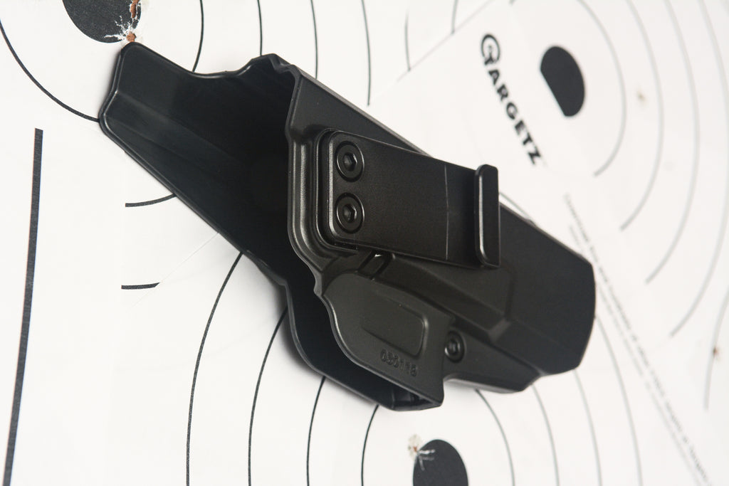 As with the Tactical OWB, the IWB concealed carry holsters are made of injection polymer. The lines are clean and smooth, both on the inside and outside with no sharp edges so commonly found on many Kydex made holsters. The injected polymer holsters are by design, marginally thicker than kydex but are much more rigid and consistent in their retention over time. Retention (the grip on the pistol made by the holster) is solid and rattle free. Adjustments can be made to the retention via the hex screw just in front of the trigger guard. There is a generous sight channel that should accommodate most height sights but I believe some of the suppressor height sights available will be too tall for this holster. The holster runs 3/4 of the length of the slide. If you have a red dot mounted to your pistol, you'll need to look to a different holster as it covers a section of the red dot plate area. There is a generous, full slide length sweat guard on the inside of the holster where the holster would be against your body or clothing. The sweat guard also acts as an abrasion buffer. The lack of a full sweat guard not only protects your firearm against the salty corrosive body sweat but also protects the side of your torso from "mid-drift slide serration rub". I have seen many images and scars to prove the point.