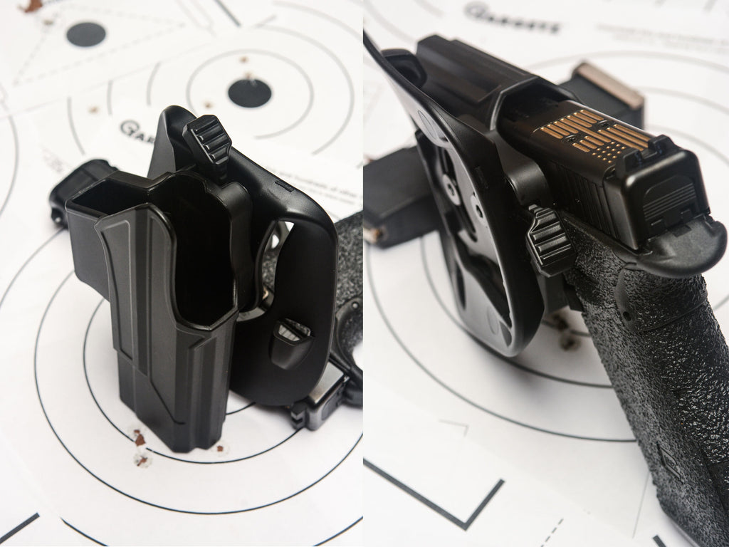 The particular holster in this review is a level 2 retention holster. It's specification offers more security retention than a regular concealed outside the waist band paddle holster. For those not familiar with the levels of retention for holsters, here's a basic guide to the three levels of retention: